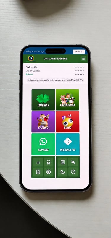 Cassino, Bingo e Jogo do Bicho com Bônus na primeira recarga do dia.